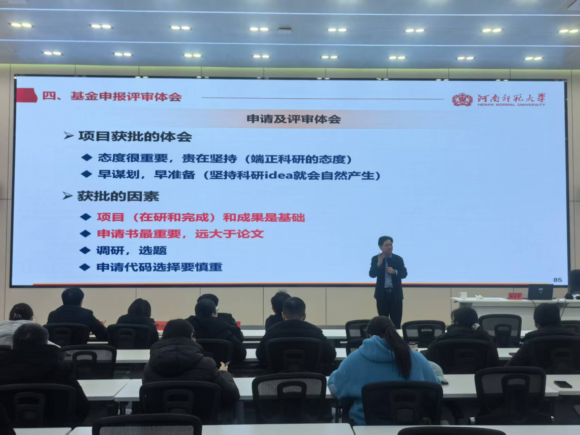 Professor Liu elaborated on the core propositions of “what is scientific research, why do scientific research, and what does scientific research aim to achieve”. He emphasized that scientific research in universities in the new era should adopt a broader perspective and return to its original purpose of nurturing talent. By fostering an innovative atmosphere, refining research directions, strengthening research teams, and building high-quality platforms, universities should serve economic and social development, construct a favorable innovation ecosystem, and earnestly shoulder the epochal responsibility of the Four Orientations (i.e., orienting toward the world’s scientific frontiers, the main economic battlefield, the nation’s major needs, and people’s health and lives). During the report, Professor Liu systematically explained the career development paths for university faculty and methods to enhance research capabilities. Drawing from his own experience in research management, he provided guidance on the writing standards and strategies for National Natural Science Foundation of China project applications.