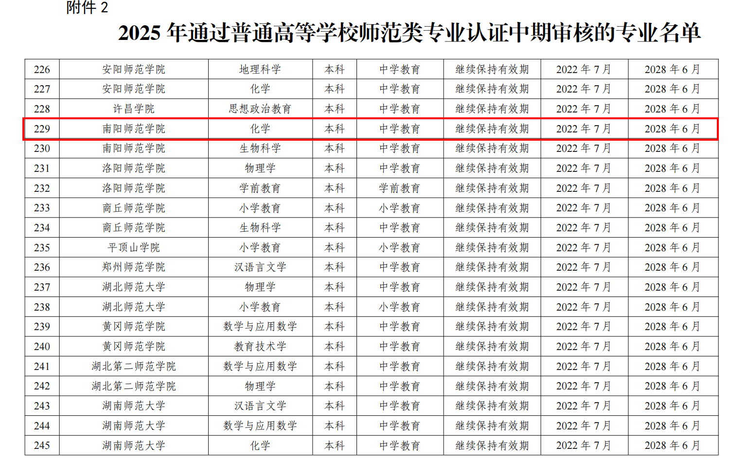 近日,教育部办公厅发布《关于公布2025年通过普通高等学校师范类专业认证专业名单及中期审核专业名单的通知》(教师厅函〔2025〕18号),公布了2025年通过师范类专业认证中期审核的专业名单。我院化学专业名列其中,顺利通过中期审核,认证结论为“继续保持有效期”,有效期自2022年7月至2028年6月。