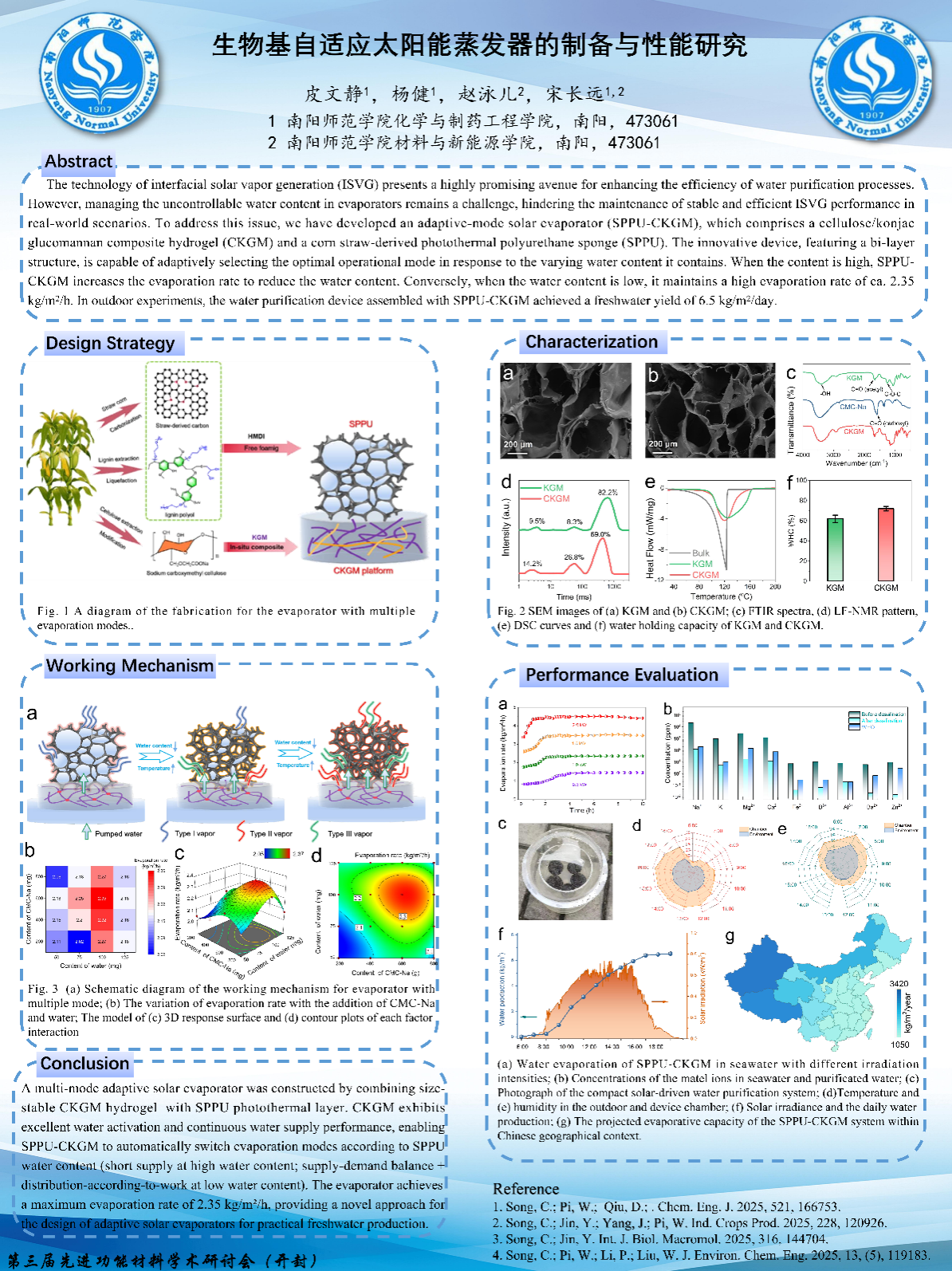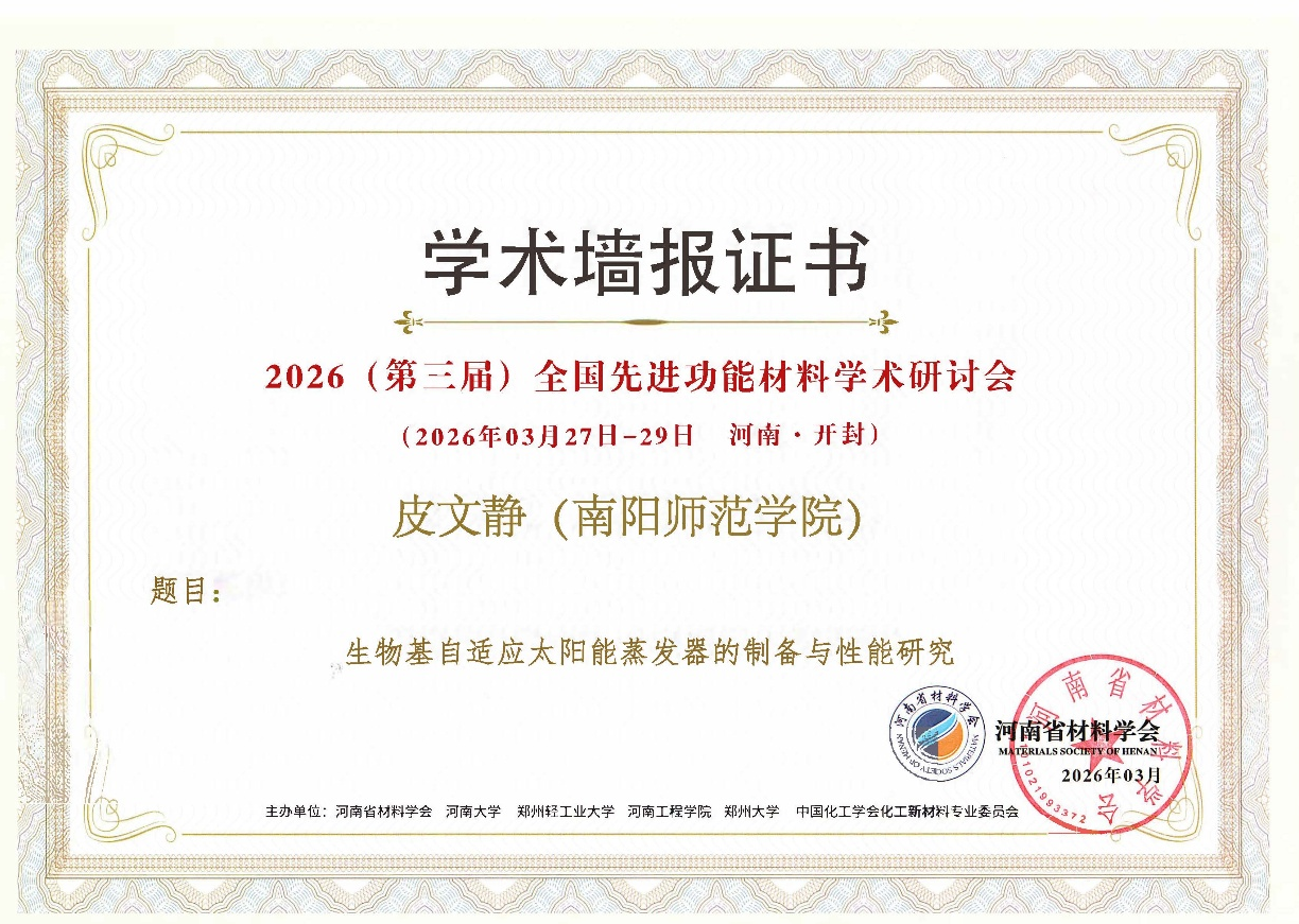 近日,第三届先进功能材料学术研讨会在河南开封顺利举办,会议汇聚全国高校专家学者,共同探讨先进功能材料领域前沿进展与发展趋势。南阳师范学院化学与制药工程学院24级卓越班学生皮文静在指导老师宋长远的带领下应邀参会研讨会上,该生全程跟随指导老师参与学术交流,认真聆听专家主题报告,系统学习材料学科前沿研究动态依托前期科研成果完成学术墙报展示,顺利完成本次学术实践任务。