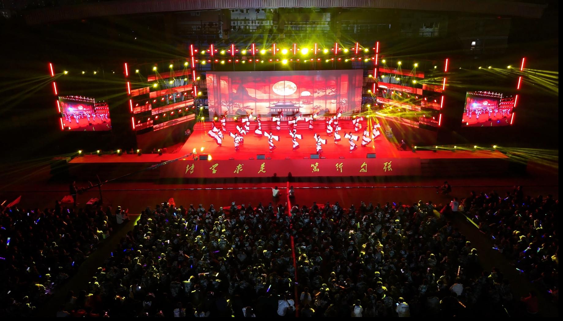 晚会分为《青春序曲·梦起卧龙》、《逐梦而行·光彩绽放》、《强国有我·共创未来》三个篇章。乐队表演《和声启程》震撼开场,层次丰富的敲击乐迅速将观众带入现场氛围,为晚会拉开序幕。《青春序曲·梦起卧龙》篇章中,舞蹈《鼓韵击节·汉宫鸣》以多变鼓点搭配柔美舞姿,尽显楚汉文化的大气雅韵;舞蹈《舞动的青春》青春洋溢,舞动出南师学子们的蓬勃朝气;朗诵《山河磅礴,我们正青春》声线铿锵,传递青年担当,致敬家国情怀与青春理想;歌曲《心向朝阳》明朗昂扬,唱出新时代青年追逐梦想的热忱,带动全场合唱;《逐梦而行·光彩绽放》篇章中,舞蹈《大医仲景》用舞姿勾勒情境,演绎“医圣”张仲景的那份济世仁心;演唱《推开世界的门》用细腻温柔的嗓音,还原故乡亲友温暖的守望,以及那份珍藏在心底的柔软牵挂;拉丁舞《燃》凭借动感的节奏与张力十足的动作,点燃青春激情;舞蹈《石榴籽的约定》热情奔放,旋转的裙摆与欢快的鼓点共鸣,带大家领略异域豪情。《强国有我·共创未来》篇章中,朗诵《从南师出发》诉说学子们自踏上大学征程起,对未来坚定探索、永不止步的信念;歌曲《我爱你中国》歌声炽热有力,唤醒血脉深处的澎湃情感;歌伴舞《再一次出发》旋律昂扬,激励青年学子以奋进之姿踏上新征程;合唱《歌唱祖国》慷慨激昂,充满着对祖国繁荣富强的自豪与祝福。整场晚会中,两个校区的同学们挥舞着荧光棒,气氛热烈,通过跨屏互动对唱军歌,实现了心与心的紧紧相连。