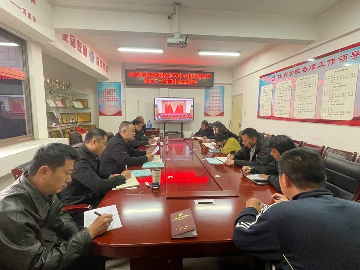 本网讯(通讯员 张雪伟)11月12日上午,体育学院党委理论学习中心组在体育馆301会议室专题学习党的二十届四中全会精神。党委书记曾鹏主持学习。党委理论学习中心组成员以及全体科级干部参加。