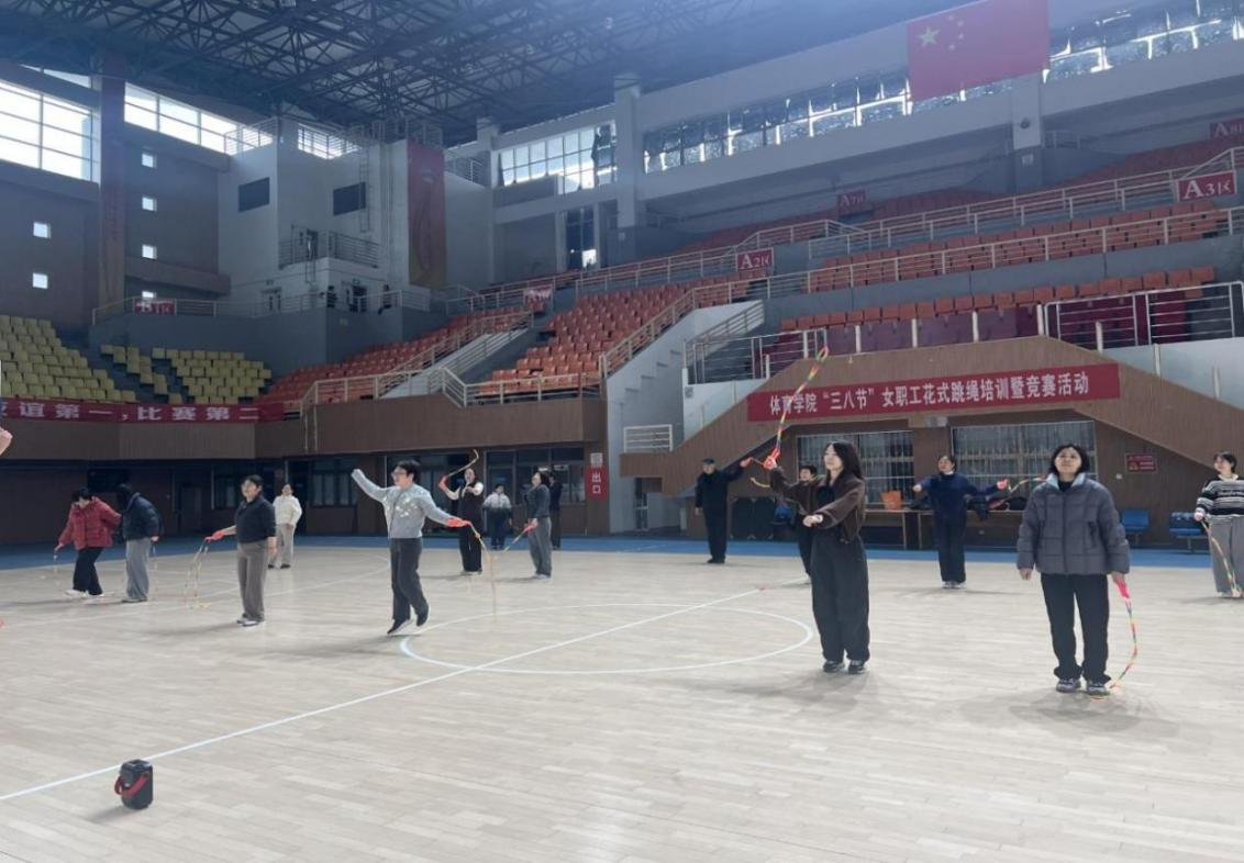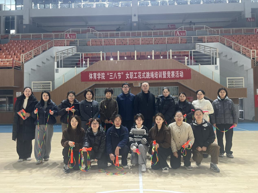本网讯(通讯员 段立军 孟军)为庆祝国际劳动妇女节,丰富女教职工文体生活,3月4日体育学院工会在体育馆举办花式跳绳培训及竞赛活动,活动由校跳绳协会担任培训指导。我院参赛女教师身姿轻盈、奋勇争先,一根根彩绳在空中飞舞,现场气氛热烈欢快。此次活动既强健了体魄、放松了身心,又增进了交流、凝聚了力量,充分展现了学院女教职工健康向上、活力满满的精神风貌。