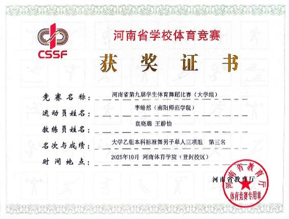体育艺术系深耕“以赛促教、以赛促学”育人模式,在国家级、省级体育舞蹈赛事中屡创佳绩。这不仅是对课堂教学与训练质量的精准检验,更为专业教学的高质量发展筑牢了实践根基。