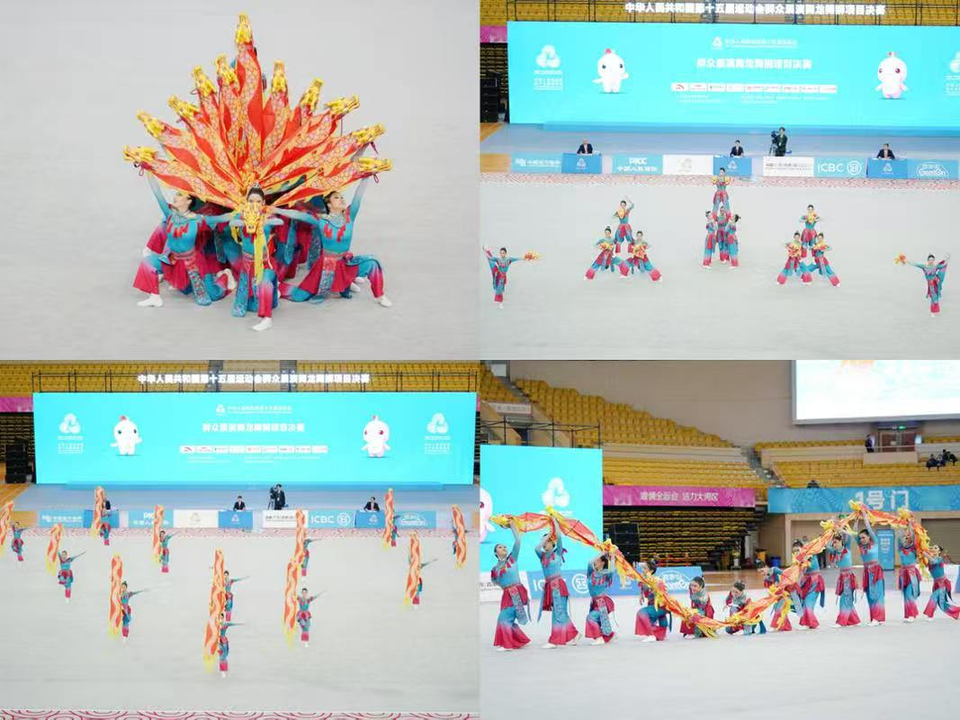 14名我校学子组成的河南彩带龙代表队,扛起河南代表团旗帜,成为全运赛场彰显南师体育实力的鲜活缩影——雷波院长挂帅领队,杨辉、何静两位教练深耕指导。凭借融合创新的表演与精湛技法惊艳全场,彩带如龙,刚如苍龙腾跃云海,柔似春水轻漾碧波,中原文化的韵味随动作流淌,最终为河南代表团斩获一枚宝贵铜牌,全体队员更喜提“一级运动员”称号。