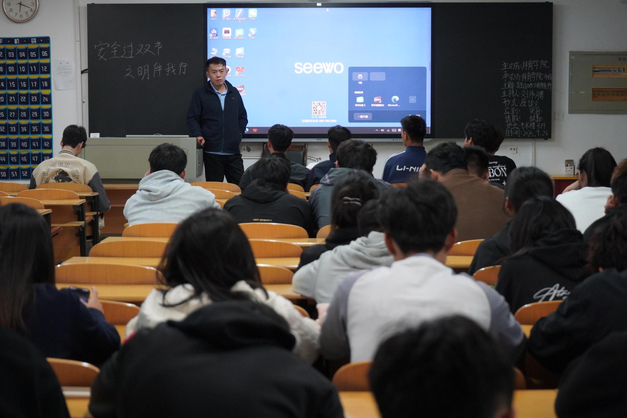 本网讯(通讯员李璇)9月28日晚,体育学院于艺术楼319教室召开“安全过双节,文明伴我行”主题班会,本次会议由各级辅导员主持。