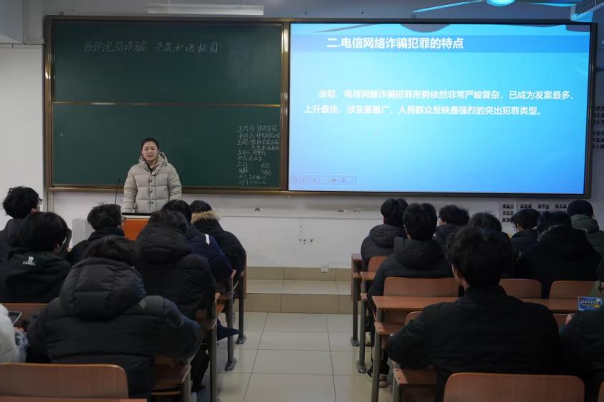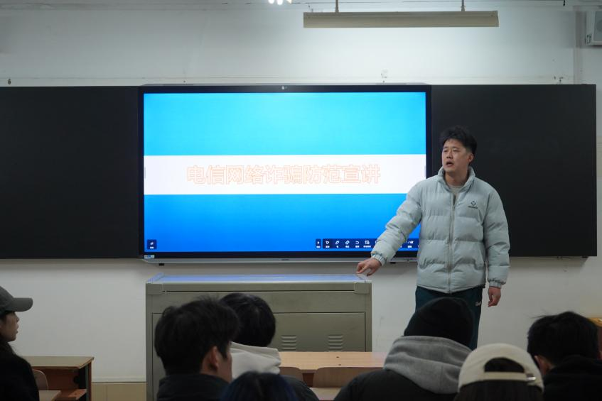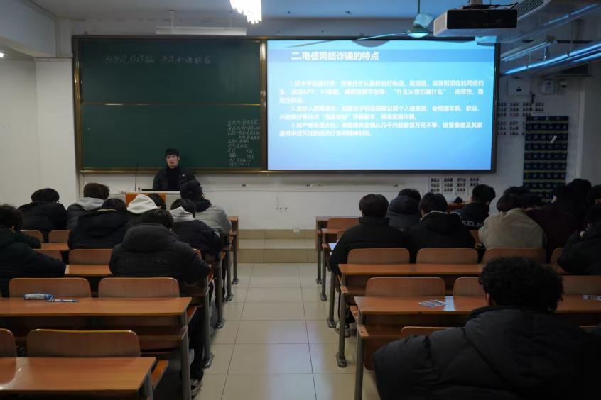 会议伊始,辅导员刘伟腾通过PPT直观展示了刷单、冒充客服、虚假贷款等常见诈骗类型及作案流程,清晰拆解诈骗套路。辅导员符林园带领大家学习并宣传反诈知识,携手共建平安校园,共筑反诈防线。辅导员巩丰伟结合真实校园案例,深入剖析受骗诱因与惨痛后果,警示大家贪小失大的后果,时刻保持警惕。辅导员翟冠华重点讲解个人信息保护与防骗技巧,强调“不轻信、不透露、不转账”,遇到疑问及时核实、及时求助。