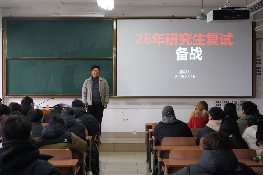 本网讯(通讯员 王冠翔)为帮助考研学子精准把握复试要点、提升应试能力与综合素养,顺利通过研究生招生复试关键环节,3月16日晚,体育学院于艺术楼311教室召开毕业班“考研复试技巧”主题讲座。体育学院教师唐烨芳主讲,2026届毕业班考研学生参加。