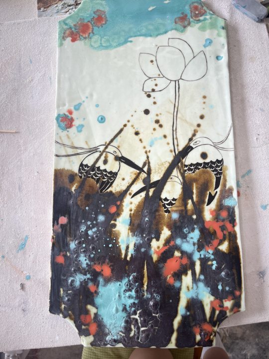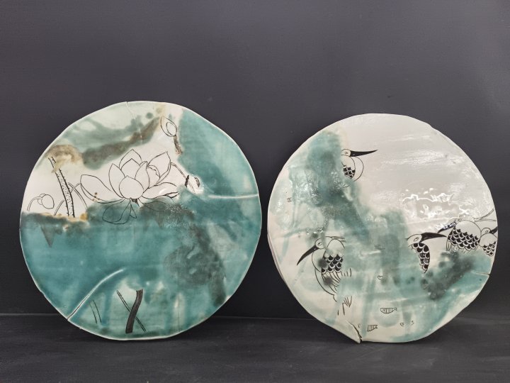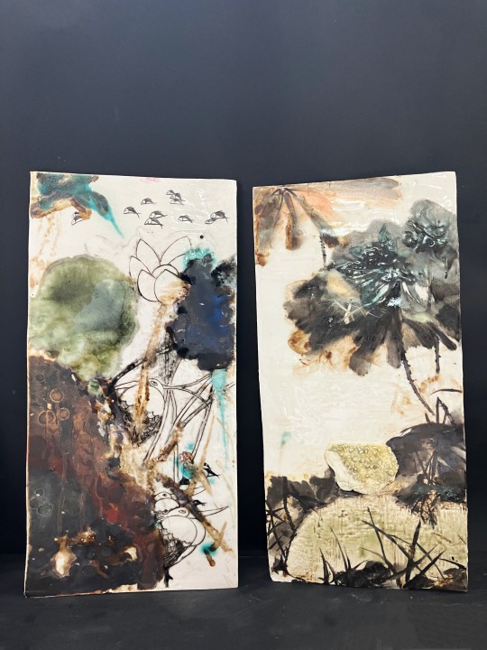 2.从“水——农——生态”的关系为切入点,以水/农家的池塘/荷花/水库的白鹭为素材,进行艺术创作,将南阳丹江水库的自然生态环境表达在陶瓷材料艺术创作中。