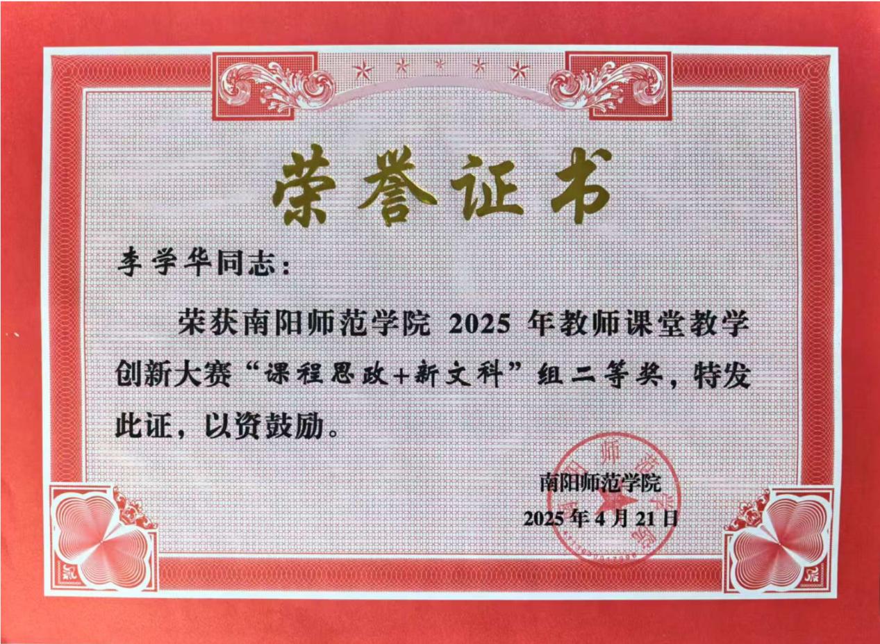 图4:2025年南阳师范学院校级课堂教学创新大赛“课程思政”组二等奖
