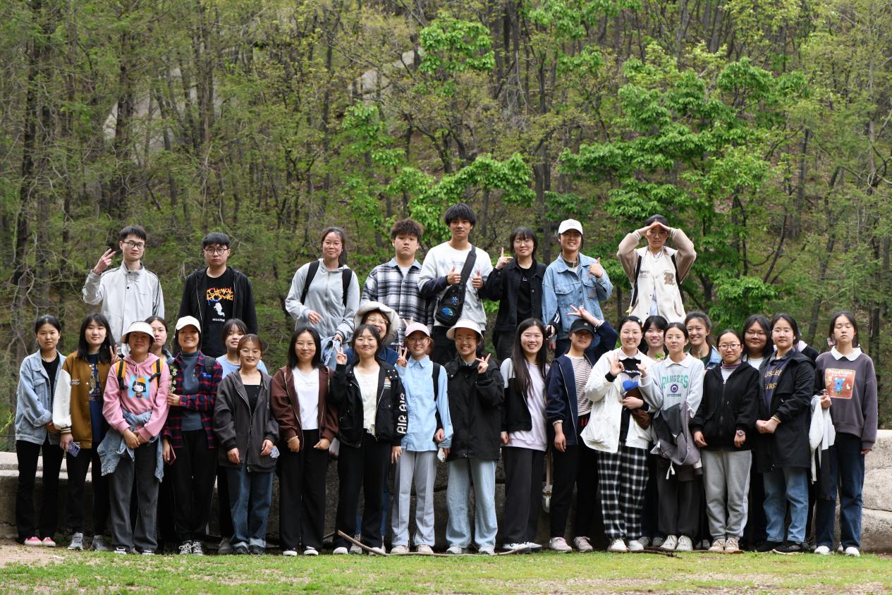2023年动物学和植物学野外实习学生在天池山入党誓词前合影