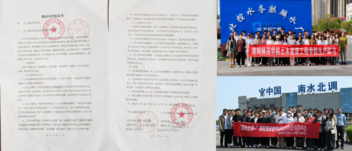 图2 校外实践合作协议及学生至南水北调跨河设施及水厂参观学习照片