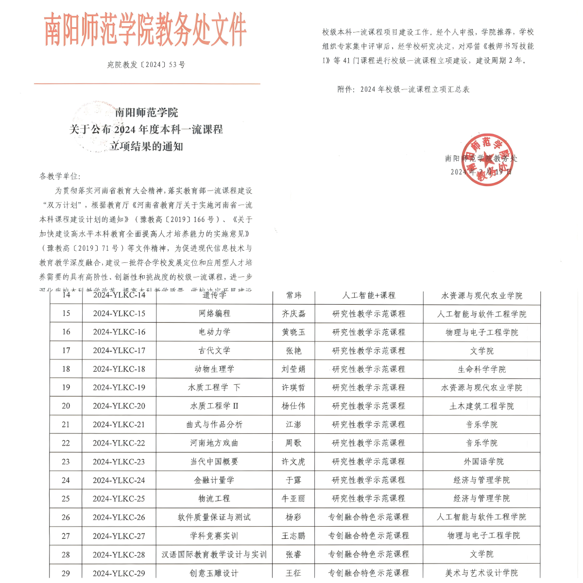 水质工程学下本科高校一流课程:研究型示范课程立项