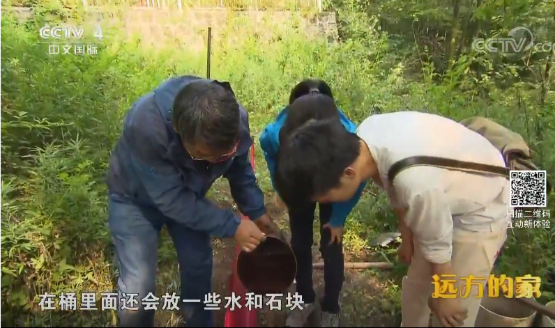 梁子安教授在宝天曼给央视记者介绍陷阱布置