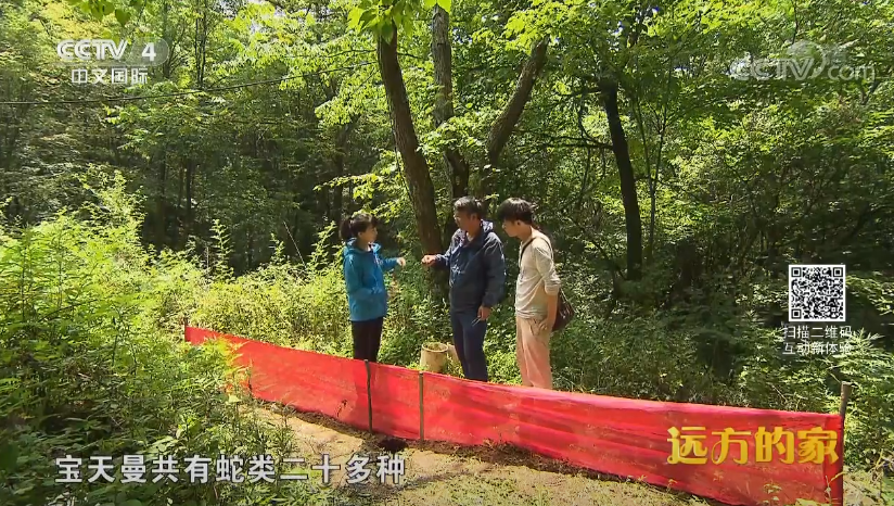 梁子安教授在宝天曼给央视记者介绍偶遇的刘氏链蛇