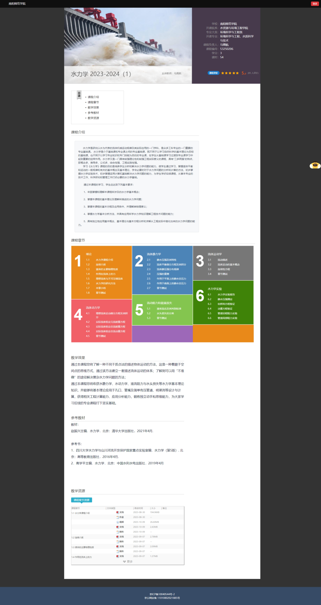 《水力学》课程简介(水资源与现代农业学院)