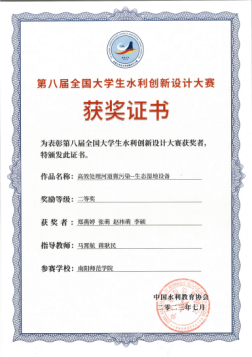 (3)社会认可:近三年指导学生获水利创新设计大赛、挑战杯等竞赛奖项7项。
